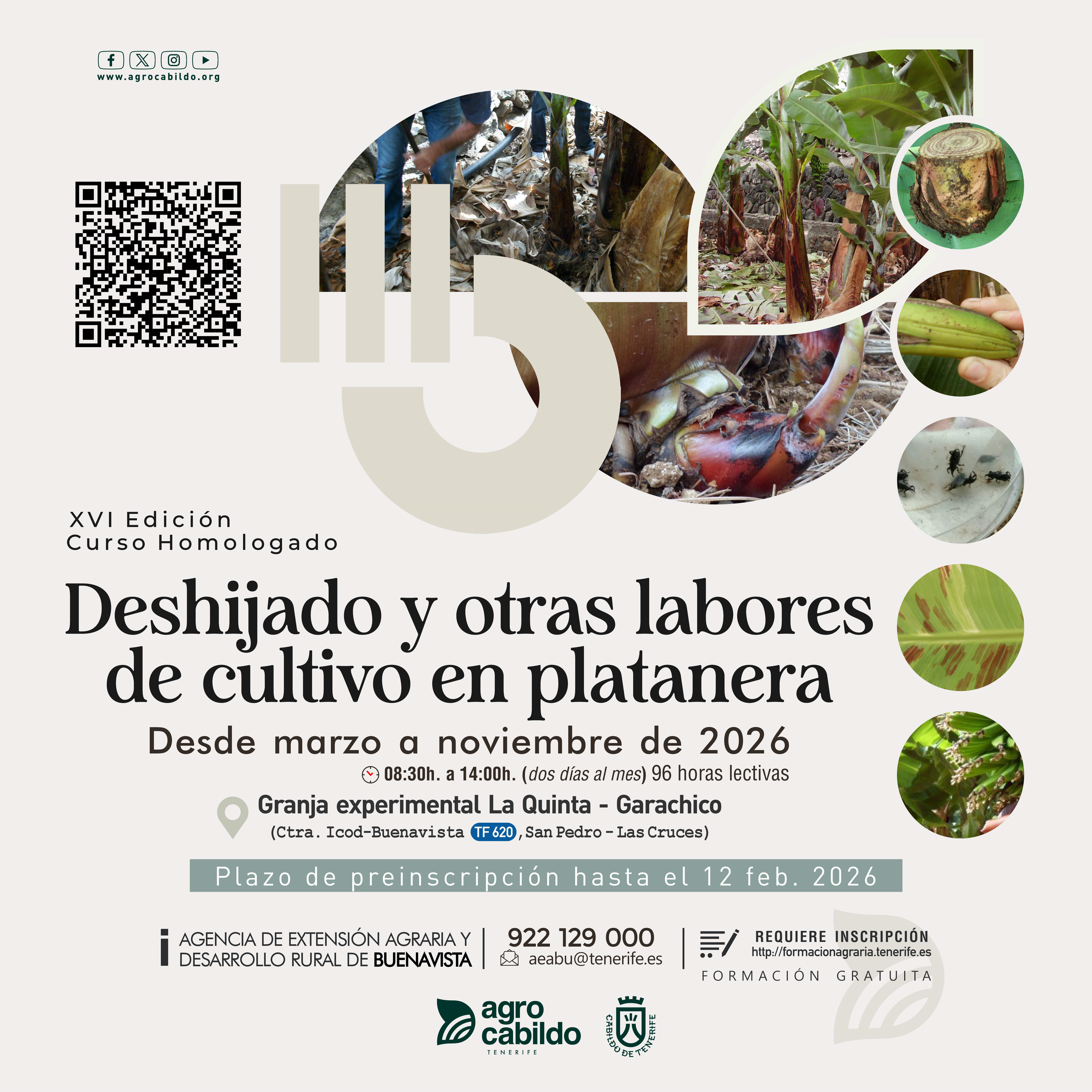 De marzo a noviembre de 2026, de 8:30 a 14:00 horas (dos días al mes), en la Granja experimental La Quinta, Garachico. Preinscripciones hasta el 12 de febrero