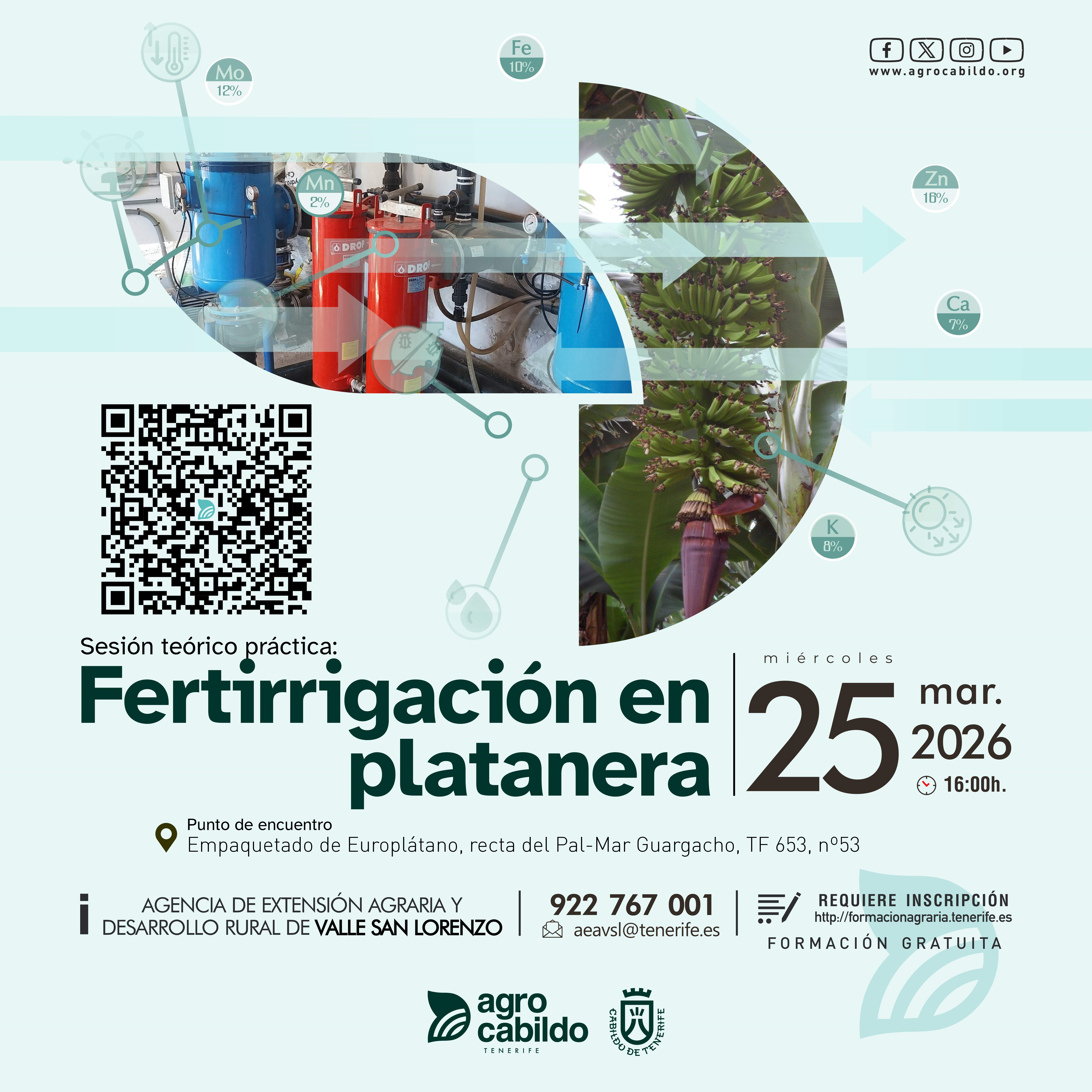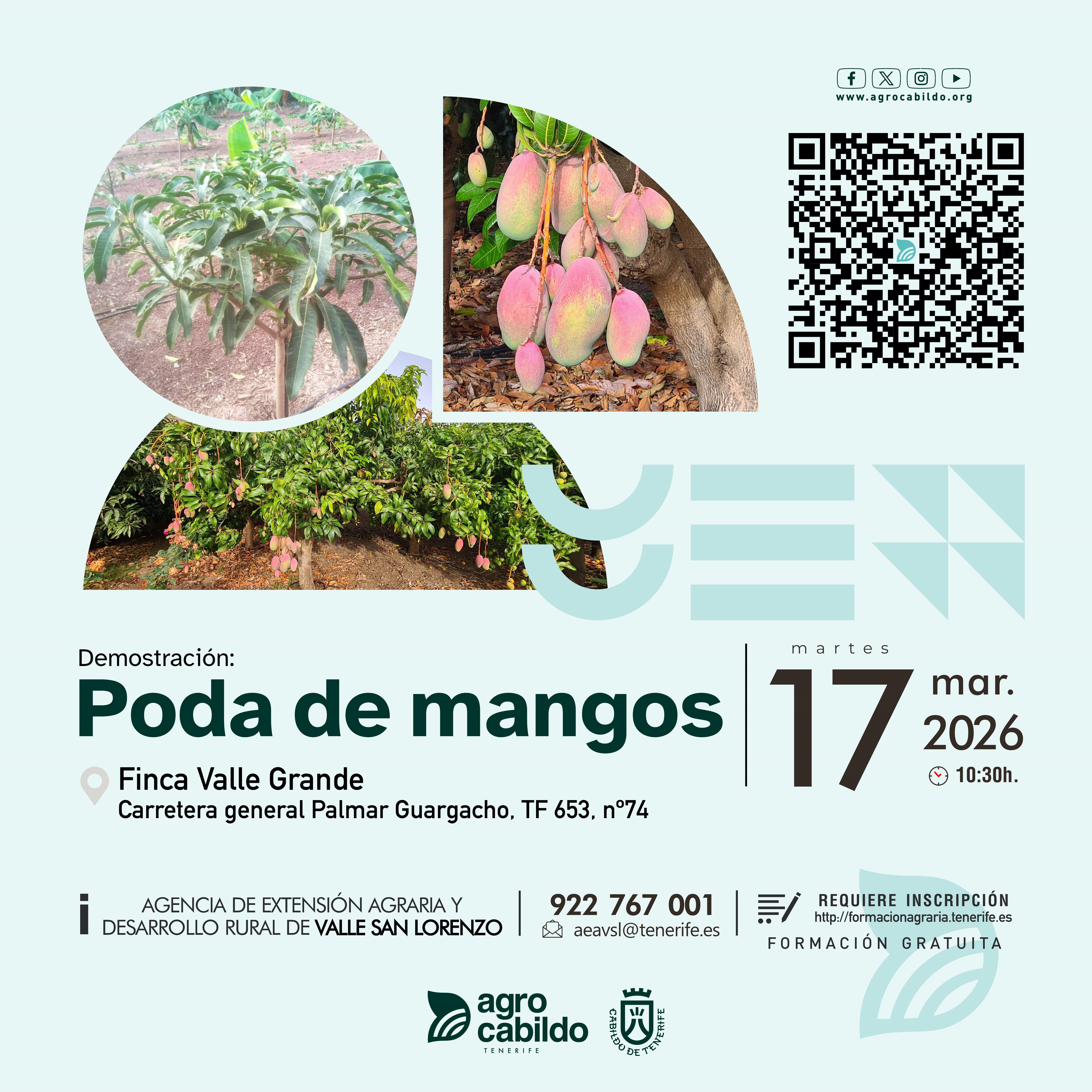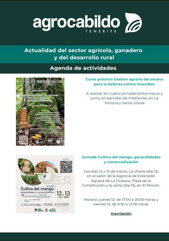 Los días 12 y 13 de marzo, La charla (día 12) en el salón de la Agencia de Extensión Agraria de La Orotava, Plaza de la Constitución y la visita (día 13), en El Rincón.